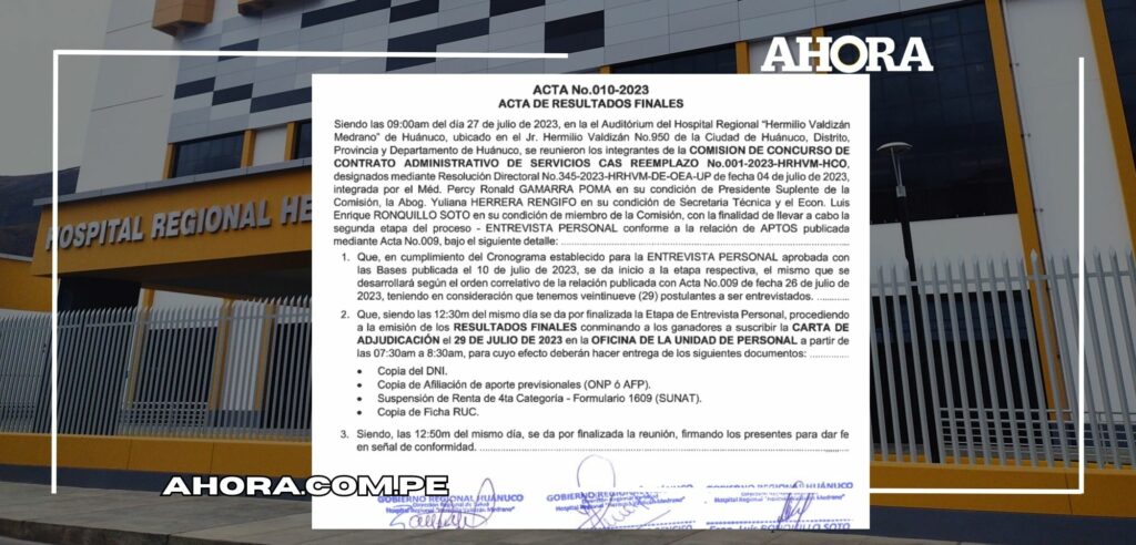 Asimismo, mediante el acta n°010-2023, a las 12:30 am del 27 de julio se dio por finalizada la etapa de entrevista personal, “procediendo a la emisión de los resultados finales”.