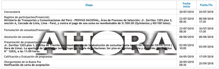 Expresó que su presencia en Lima es para observar la fase final de la licitación y que se garantice un ganador para evitar que se continúe postergando e incluso que se declare desierta como ocurrió en la primera convocatoria.