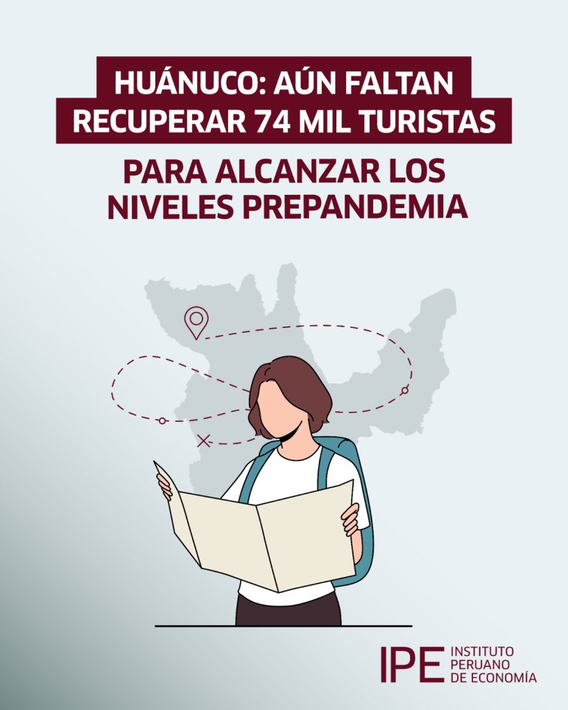 · La llegada de turistas a Huánuco sumó 751 mil visitantes durante 2024, resultado por encima al del año previo (2023: 736 mil). Pese a este avance, la región aún debe recuperar alrededor de 74 mil turistas para alcanzar el flujo registrado antes de la pandemia. Esta brecha se explica por una menor afluencia tanto de turistas nacionales (con una caída de 71 mil) como de turistas extranjeros (reducción de 3 mil) respecto a los niveles de 2019.