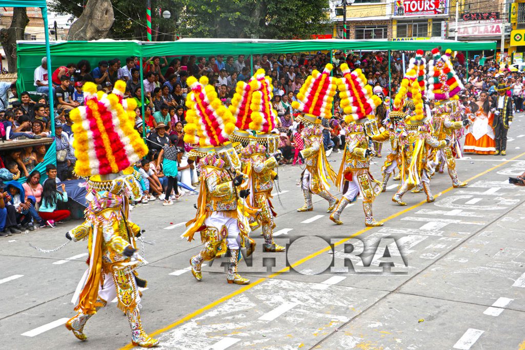 Inicialmente, desde las 4 esquinas ingresaron imponentes 6 cofradías que se concentraron en el frontis del Palacio Municipal. Las bandas de música de cada agrupación se reunieron para interpretar en conjunto nuestra emblemática canción “El Cóndor Pasa” de nuestro insigne Daniel Alomía Robles.