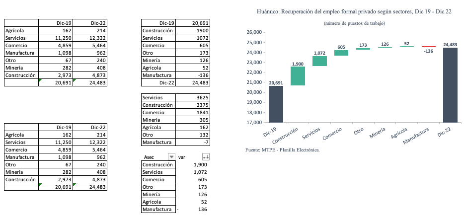 Huánuco: Empleo formal creció 15 % al cierre del 2022 por dinamismo de construcción y servicios
