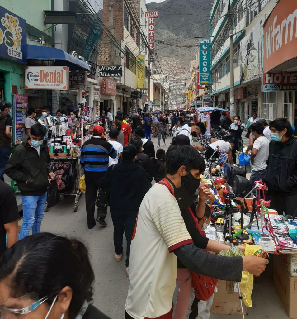 Cientos de ciudadanos abarrotaron las calles de Huánuco en víspera de año nuevo, en los jirones Huánuco, Huallayco, San Martin, Abtao y Ayacucho se observaron vendedores ambulantes, instalación de toldos improvisando tiendas en plena pista y sin ninguna medida de bioseguridad.