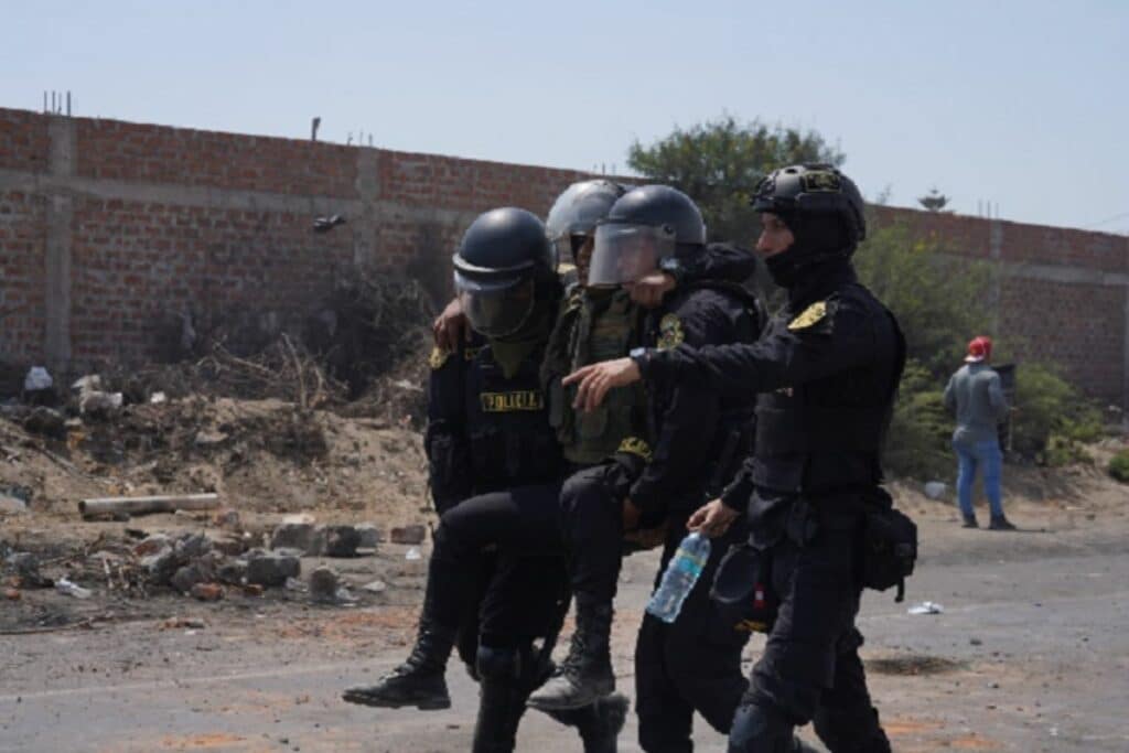 El choque se produjo pasadas las 12.00 horas, en el distrito de Salas Guadalupe en Ica. Efectivos policiales intentaron despejar la vía, pero fueron sorprendidos por 1500 vándalos. Ellos estaban provistos por objetos contundentes como palos, fierros, piedras, hondas caseras, huaracas y otros objetos.