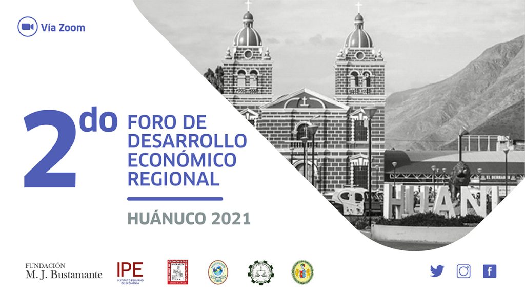 El Instituto Peruano de Economía (IPE), la Fundación Manuel J. Bustamante de la Fuente, la Facultad de Economía de la Universidad Nacional Hermilio Valdizán (UNHEVAL), el Colegio de Economistas de Huánuco y la Cámara de Comercio e Industrias de Huánuco, realizaron el II Foro de Desarrollo Económico Regional Huánuco 2021.