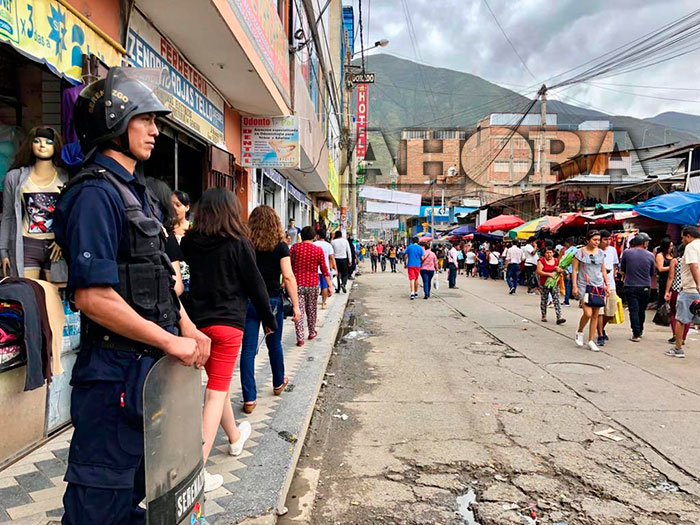La erradicación del comercio ambulatorio en los alrededores del Mercado Modelo se ejecuta con apoyo de la Policía Nacional, que desplegó casi un centenar de efectivos y 40 integrantes del Serenazgo Municipal de Huánuco, con el objetivo de recuperar el orden, la seguridad y devolver la tranquilidad a los vecinos. Para evitar enfrentamientos con los comerciantes se cerraron las calles de acceso al principal centro de abastos de la ciudad, desde las 4 de la mañana, con lo cual se evitó que los comerciantes informales ingresen sus productos para invadir la vía pública, pero los efectivos del Serenazgo Municipal incautaron algunos productos que los ambulantes dejan en las viviendas para vender al siguiente día, productos que son donados a albergues y asilos de la ciudad.