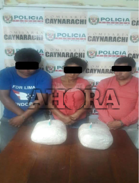 Personal policial de la Comisaría Caynarachi, provincia de Lamas, departamento de San Martín, intervino a tres personas presuntamente implicadas en el tráfico ilícito de drogas (TID), a quienes incautó más de 10 kilos de alcaloide cocaína, en el kilómetro 54 de la Carretera Marginal Fernando Belaúnde, en el frontis de la referida dependencia PNP.