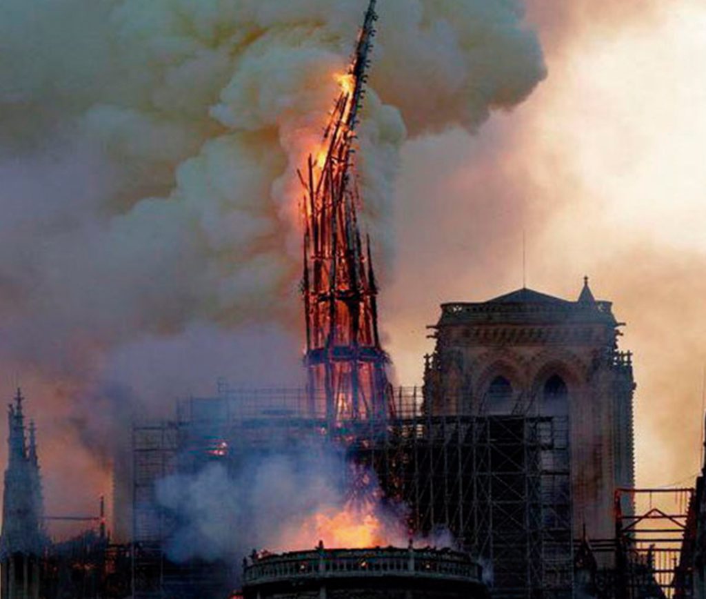 La aguja del templo, que estaba rodeada de un andamiaje por las obras, se derrumbó después de que su estructura fuera debilitada por las llamas.