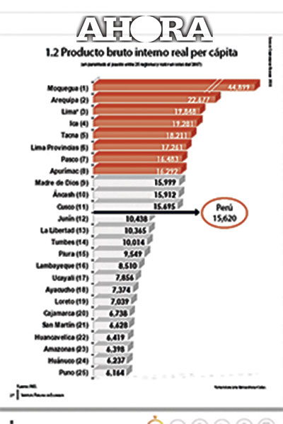 El gráfico que mostramos a continuación simboliza el nivel de productividad de cada habitante huanuqueño en comparación a otros departamentos. ¿Qué haremos para superar ello? Puesto 24 según el Índice de Competitividad 2018. ¿Escuchaste alguna propuesta para revertir ello?