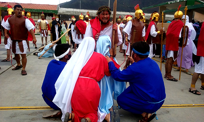 Con gran realismo, los internos protagonizaron la vida, pasión y muerte del hijo de Dios. Fue tan bien hecha la puesta en escena porque se prepararon más de 2 meses para la actuación que realizaron en el principal patio del centro penitenciario.