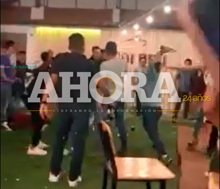 En el video que dura 36 segundos se ve a un grupo de jóvenes de porte militar con cabello corto, entre empujones y griterío, incluso uno de ellos recoge una botella de cerveza vacía del piso y lo lanza contra otro, entre los gritos de algunos asistentes.