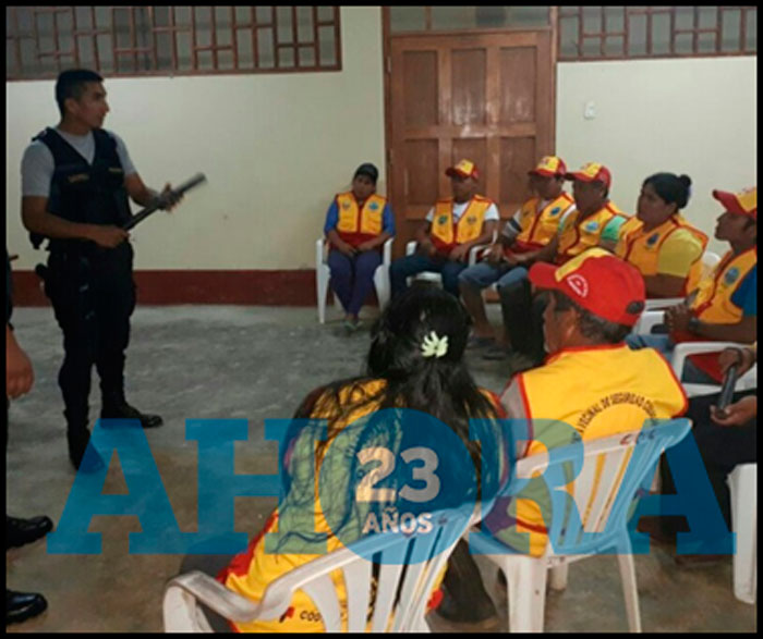 Los policías capacitadores desplazan a los caseríos que cuentan con juntas vecinales. Una de las localidades visitadas fue Río Espino, donde los efectivos fueron recibidos con aplausos y ofrecieron la charla “Arresto ciudadano y uso de la vara de la ley”.