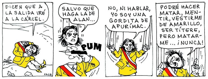 Juan Acevedo (Lima, 1949) es el creador de “El Cuy”(1979), desde hace mucho uno de los referentes en el arte peruano, ha elevado la técnica de la historieta, el noveno arte, al discurso válido de cualquier manifestación artística, con llegada al público de todas las regiones. Con talento, nervio y decencia trabaja en este país donde parece que leer se está volviendo subversivo y escribir, mucho más. Hay poco que agregar al pronunciamiento publicado en Lima el 16 de octubre.
