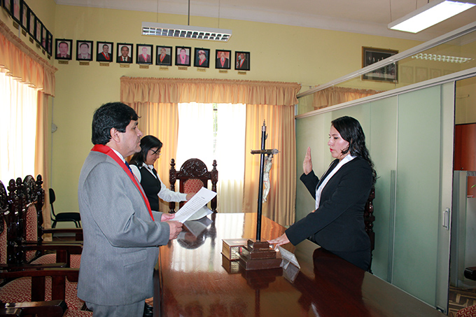 En ceremonia protocolar presidida por el presidente de la Corte Superior de Justicia de Huánuco, Dr. César González Aguirre, ayer en la mañana juramentaron como jueces supernumerarios de la provincia de Leoncio Prado (Tingo María) y del distrito de Aucayacu los nuevos magistrados Miguel Ángel Ramos Robles y Silvia Acosta Yacolca respectivamente.