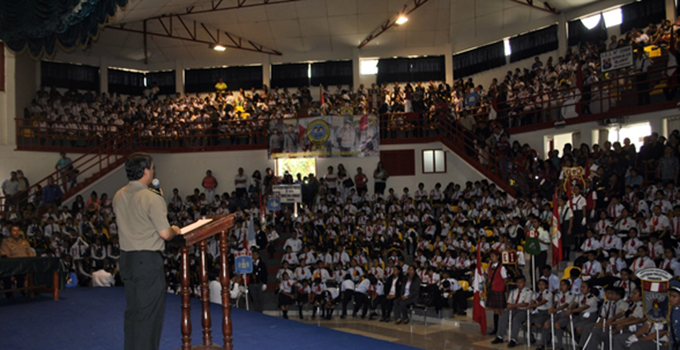 En ceremonia efectuada ayer en el teatrín de la Universidad Hermilio Valdizán juramentaron los policías escolares de instituciones educativas públicas y privadas de los distritos de Huánuco, Amarilis y Pillco Marca, quienes tendrán la función de ayudar a desarrollar una labor de mayor control en las instituciones educativas, informó Rocío López Tucto, prefecta regional. Explicó que los escolares asumen el compromiso de contribuir a mantener la disciplina y el buen comportamiento de sus compañeros de colegio para que puedan dedicarse a sus estudios.