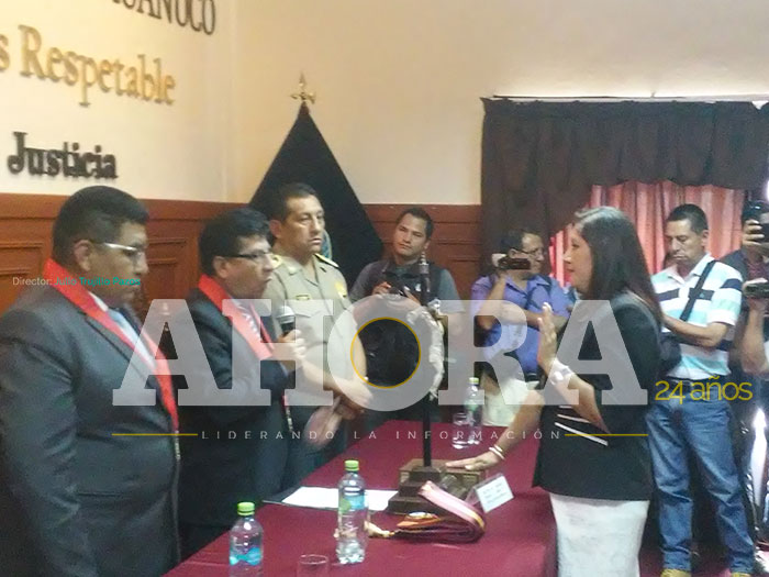 En acto público efectuado ayer, Samuel Santos Espinoza, presidente de la Corte Superior de Justicia de Huánuco, tomó juramento a la nueva prefecta departamental Herly Corina Cabrera Osorio, quien se comprometió a trabajar articuladamente con todos los sectores para mejorar los preocupantes índices de seguridad ciudadana, que sitúan a los distritos de Huánuco, Amarilis y Pillco Marca entre los 120 más vulnerables al crimen y la violencia del país, según el Índice de Priorización elaborado por la Dirección General de Seguridad Ciudadana y aprobado mediante Resolución Ministerial n.° 809-2019 del Ministerio del Interior con fecha 3 de junio de 2019.