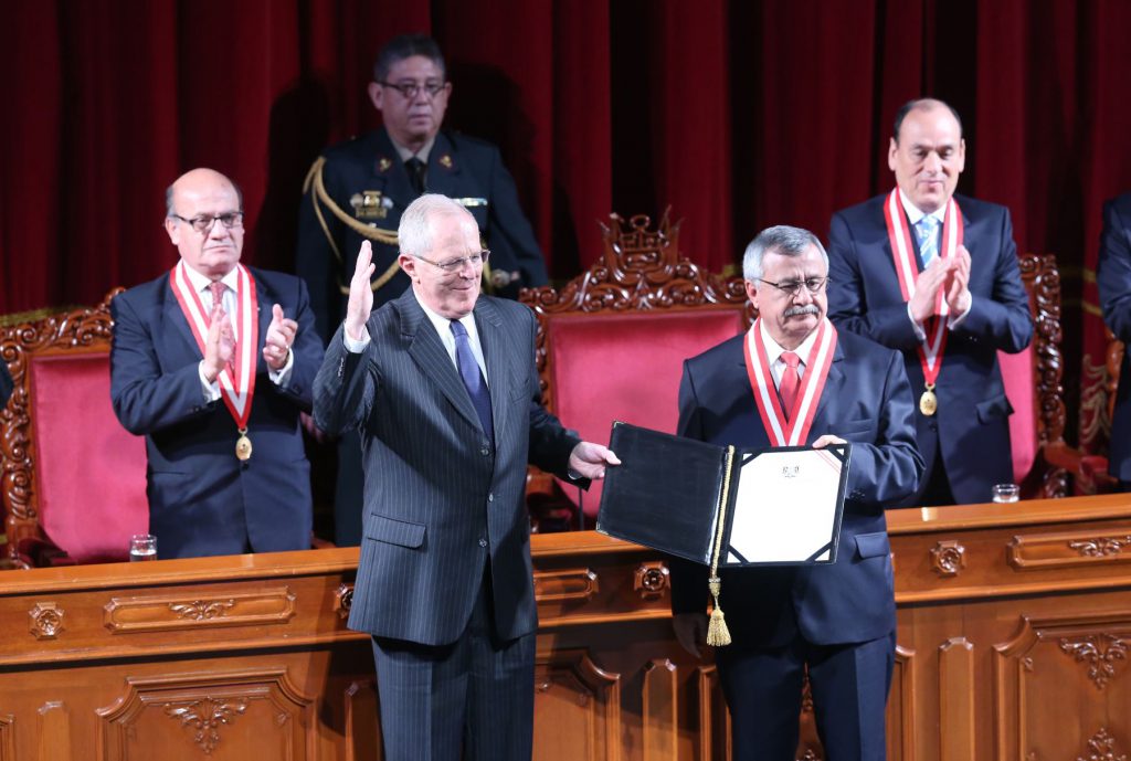El presidente electo Pedro Pablo Kuczynski pidió la unión de todos los peruanos, tras recibir las credenciales de parte del Jurado Nacional de Elecciones, en sesión solemne realizada en el Teatro Municipal de Lima.