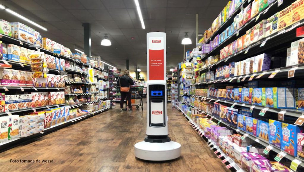 El robot se parece a un altavoz de pie colocado encima de una aspiradora doméstica autónoma: es alto y delgado, y unas pantallas redondas que se mueven hacia la izquierda y hacia la derecha le hacen de ojos. Una señal roja en su alargada cabeza lo presenta: “¡Hola, soy Tally! ¡Controlo las existencias en las estanterías!” Entonces se genera un momento de incertidumbre. Al detectar a un ser humano Tally se para, y el cliente se detiene, sin saber qué hacer. ¿Debería rodear al robot? ¿Esperar a que se mueva solo? Después de unos segundos, el cliente decide proseguir por otro pasillo.