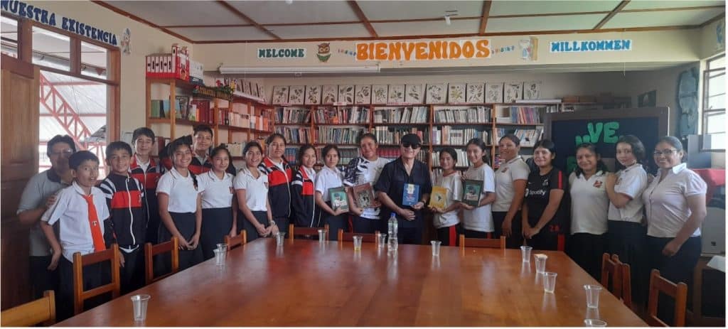 Julio Orbezo presenta “La tierra, último refugio del hombre” en la Institución Educativa Túpac Amaru, en su “Biblioteca Escolar maestra Carolina Egg”, con la presencia de jóvenes estudiantes, todos haciendo preguntas. Norita Bottger cuenta que es la primera vez que se presenta un libro en la biblioteca. La despedida concluye con un punto aparte. Al llegar la noche, se realiza una siguiente presentación, para adultos, en “La Posada de Egg” café emblemático del distrito de Pozuzo, con la compañía de sus dueños don Luis y doña Carmen y con la presentación de la maestra Silvia Pomachagua. Llovieron los autógrafos.