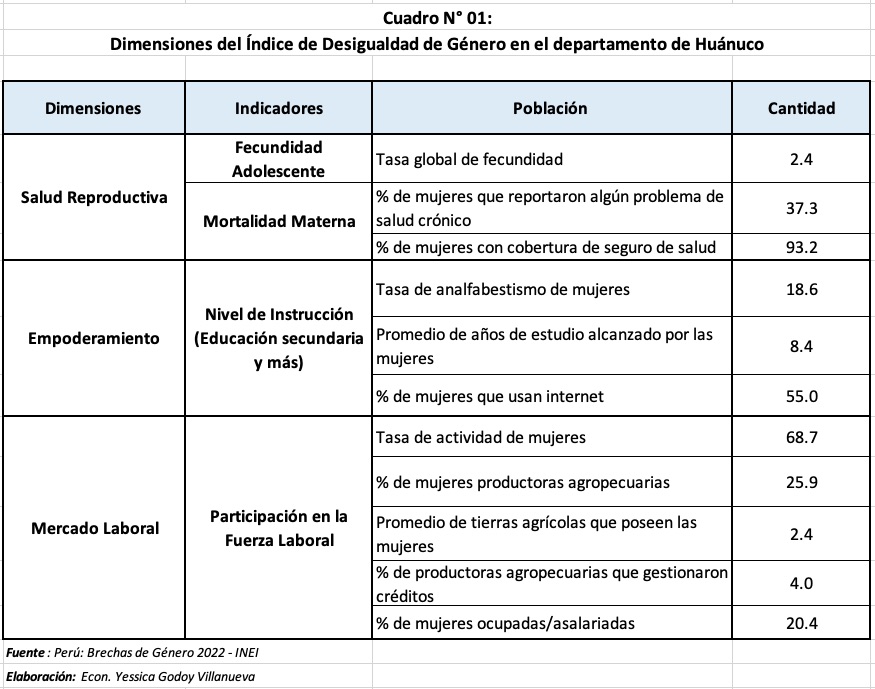 En el Cuadro N° 01, se muestra una rápida radiografía de la situación de la mujer en el departamento de Huánuco.