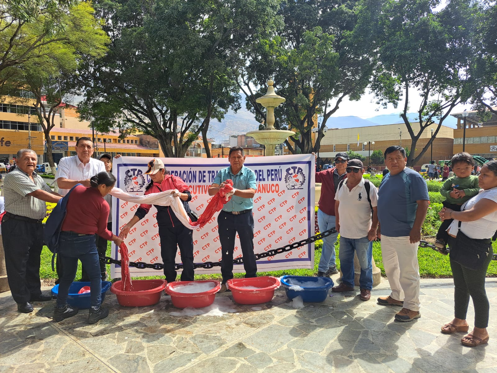 La Confederación de Trabajadores del Perú (CTP) realizó este jueves 6 de junio una jornada nacional de protesta simbólica denominada “Lavado de Banderas”, con actos simultáneos en las plazas principales de distintas regiones del país. En Huánuco, la actividad se llevó a cabo en la Plaza de Armas, donde representantes sindicales denunciaron la persistente corrupción en los distintos niveles del Estado.