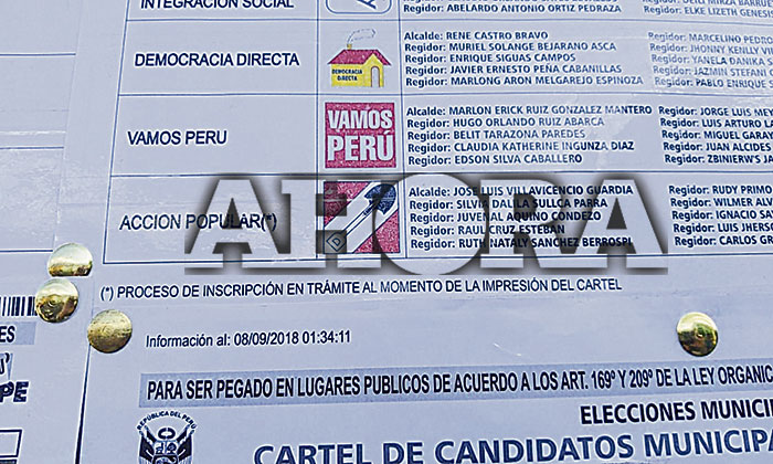 Por su parte, la ODPE Hco. aclaró que la impresión del cartel se hizo antes que se termine de resolver las tachas, exclusiones y otros recursos contra la lista de postulantes. Explicó que los carteles fueron impresos porque deben ser distribuidos a lugares lejanos para que el ciudadano disponga de información necesaria para sufragar.