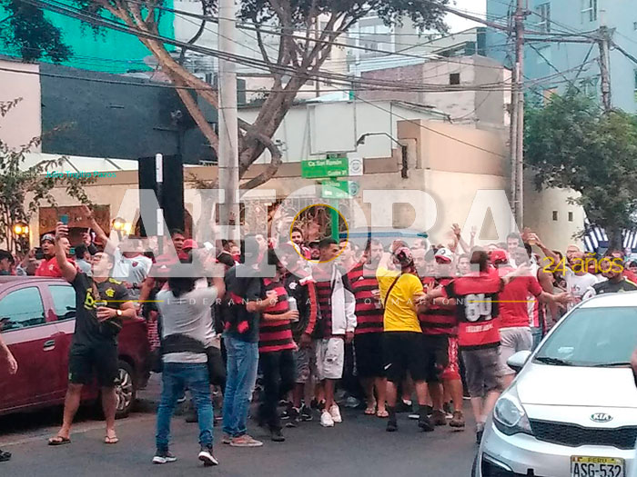 Mientras tanto, con mucha anticipación, cientos de hinchas del Flamengo comenzaron a llegar a Lima desde el lunes, quienes previo a la llegada del plantel armaron verdaderas fiestas en las afueras del estadio Monumental, escenario de la final.