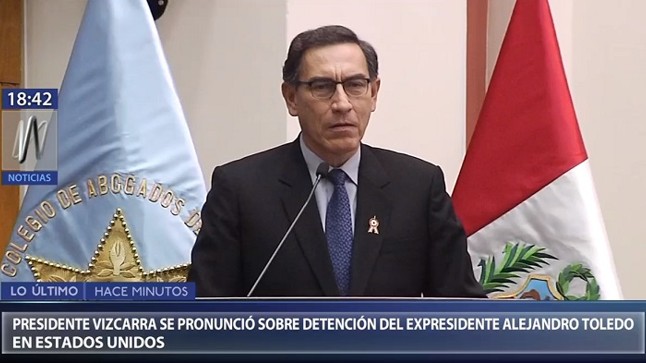 Martín Vizcarra, presidente del Perú, se pronunció en torno al arresto del exjefe de Estado, Alejandro Toledo, en Estados Unidos en el marco de su proceso de extradición por el caso Odebrecht.
