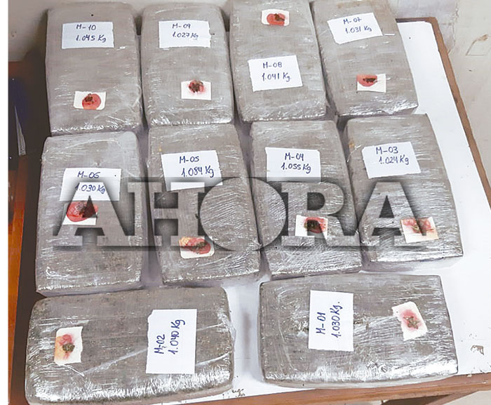 La intervención ocurrió el miércoles a las 10:45 p. m. cuando al revisar las bodegas del vehículo, entre los equipajes los policías encontraron un costal blanco, en cuyo interior había 10 paquetes precintados de la hierba alucinógena.