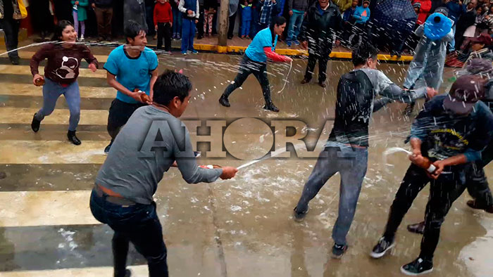“La fiesta consiste en un enfrentamiento entre los dos barrios del distrito con chicha, si la chicha se acaba, se enfrentan con cerveza, si la cerveza se agota, utilizan cualquier otro trago, podría ser vino y tragos finos. Luego del enfrentamiento donde participan familias enteras, grandes y chicos, gana quien termina menos mojado, la idea es que todos estén mojados, al final todo termina en una gran fiesta donde participan todos los visitantes en la plaza de armas al son de las bandas de música”, explicó.
