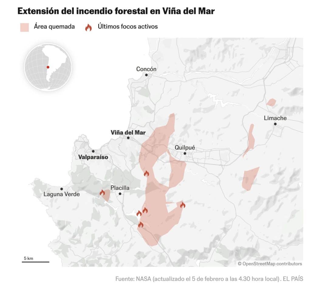 Ante la magnitud de la tragedia, que ya es considerada la peor en Chile después del terremoto de 2010, el Gobierno decretó estado de excepción constitucional de catástrofe en las regiones de Valparaíso, O’Higgins y El Maule.Además, se decretaron dos días de duelo nacional en memoria de las víctimas y se activaron protocolos para recibir ayuda humanitaria desde el extranjero, incluyendo brigadas de bomberos y personal especializado en búsqueda y rescate de otros países de Latinoamérica y Europa.La prioridad en estos momentos, según afirmaron las autoridades, es controlar los incendios que aún permanecen activos, encontrar a los desaparecidos y brindar asistencia a los miles de damnificados que lo han perdido todo.Esperamos que esta información sea de utilidad. Quedo atento a cualquier consulta adicional.