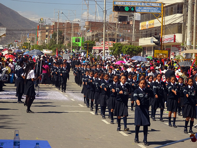 Las instituciones, que participaron, son: Juan Velazco Alvarado, Mario Vargas Llosa, Augusto Cárdich, Euclides, Colegio Mayor, I. E. de Vichaycoto, Javier Pulgar Vidal, Pillco Mozo. Además, desfilaron alumnos del Colegio Hermilio Valdizán, CEBA Juan Velasco Alvarado, Alipio Ponce.
