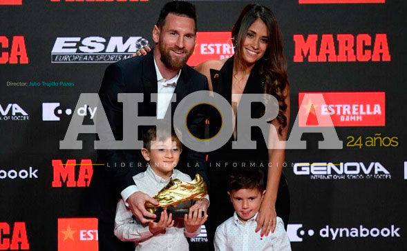 Thiago y Mateo, sus hijos, fueron entregaron el galardón a Leo Messi y Antonela se sumó a la foto familiar. El argentino agradeció la presencia de su familia y en especial de sus compañeros Luis Suárez y Jordy Alba y recalcó que “sin mis compañeros no lo habría logrado, esto es un reconocimiento para todos mis compañeros, como siempre que recibo un premio así”.