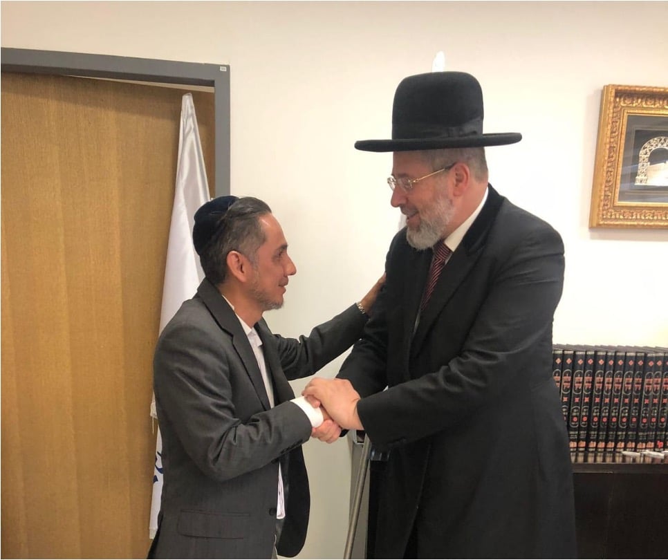 Yochanan J. Bravo con el Rabino Baruj Dov Povarsky (Fotografía: cotesía de Y. J. Bravo).