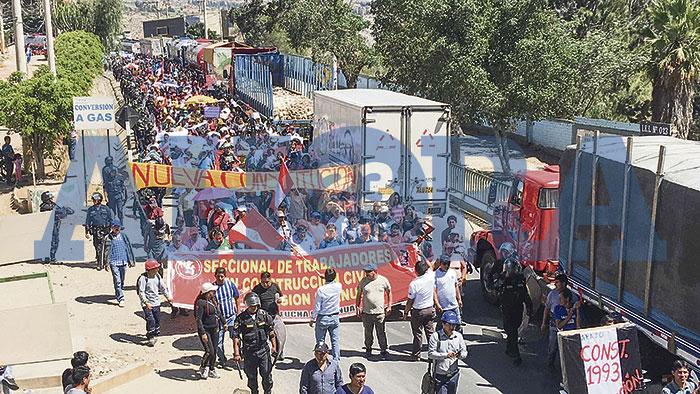 Jotwin Criollo, dirigente de Construcción Civil, señaló que la protesta no sólo es contra los audios de corrupción en el sistema judicial sino también recordó las coimas que Odebrecht entregó a varios políticos nacionales.