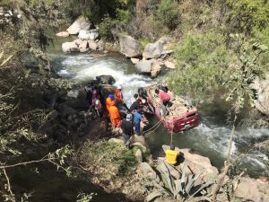 Tras desbarrancarse a bordo del automóvil rojo de placa de rodaje B8G-737. Un minero de la empresa Raura y una menor mueren.