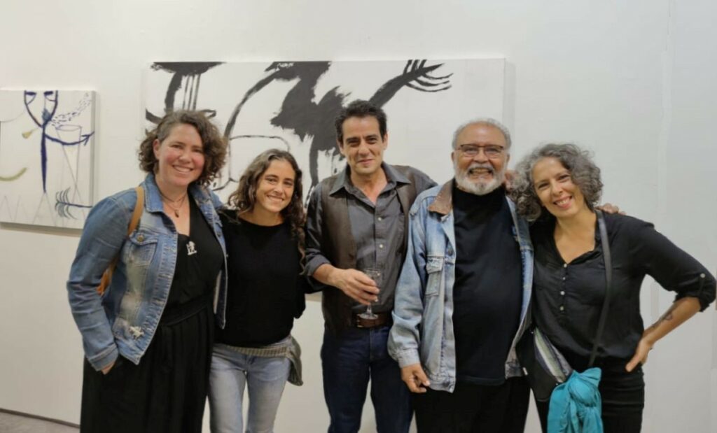 “Muchas noches”, es el título perfecto de esta individual y contiene en esa frase, todo el derrotero que un artista debe vivir para descubrir los seres que pueblan el blanco de sus telas; un quehacer con una parte arcaica, donde la imagen encuentra su respuesta en las dos dimensiones OXY; devolverle a la pintura su esencia: Mi ojo me reclama la bidimensionalidad, diría alguna vez el artista; el efecto de tercera dimensión o concavidad no son su afán, indaga en el origen, como el artista de Lascaux o Toquepala, pintando bisontes o camélidos y su contemporáneo Jean Michel Basquiat (1960 – 1988), ancestralmente actual. Giorgio en su taller, seguro que no tiene una lámina de su par americano, pero si grafitis hechos por Santiago y Daniel, sus hijos.