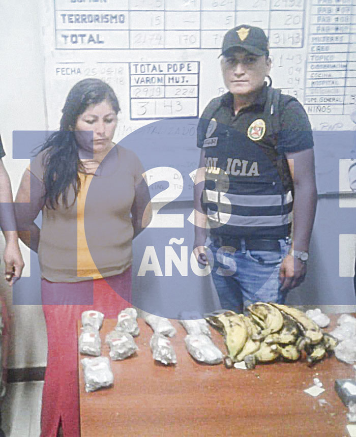 Trabajadores del Instituto Penitenciario de Potracancha arrestaron a la señora Agripina Castro Ponce, tras descubrirla tratando de ingresar marihuana camuflada en un paquete de plátanos. El hecho se registró el último sábado en horas de la tarde.