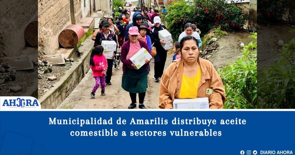 La Municipalidad Distrital de Amarilis inició la distribución de aceite comestible a familias en situación de vulnerabilidad. Según indicó el área de Desarrollo Social, la entrega comprende un total de 10 mil unidades del producto, gestionadas en conjunto con el Instituto Nacional de Defensa Civil (INDECI).
