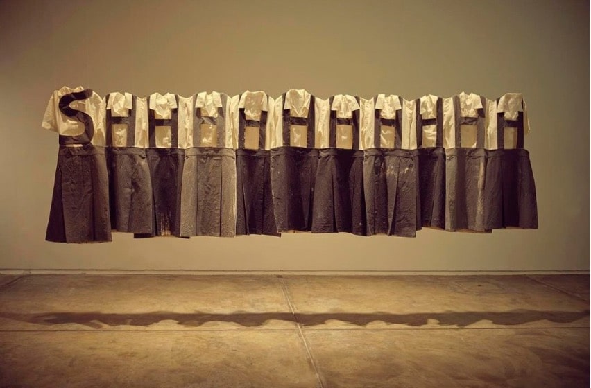 La obra Silencio (Instalación de medidas variables) es explícitamente, la prueba de la generación castrada por regímenes autoritarios, tiempos donde el estudiante repetía lo que el “buen docente” dictaba como sacrosanto dogma y, la reflexión crítica quedaba al margen, fuera del alumno (como se denominaba al estudiante). Si bien en el papel, se han dado cambios como la educación por competencias, donde el estudiante construye la clase y el docente cumple el papel de moderador, este se estrella con rezagos equivocados y traumáticos de los modelos de gobiernos de facto. Por otro lado, el sistema que en la actualidad se intenta implantar, no termina por cuajar, dando así la sensación de estar en un momento de persistente experimentación en el proceso educativo, evidenciándose así, entre el grueso estudiantil confusión entre autoridad y disciplina; propensión hacia una generación amoral, engreída e indiferente, donde el padre es relegado al papel de caja chica.