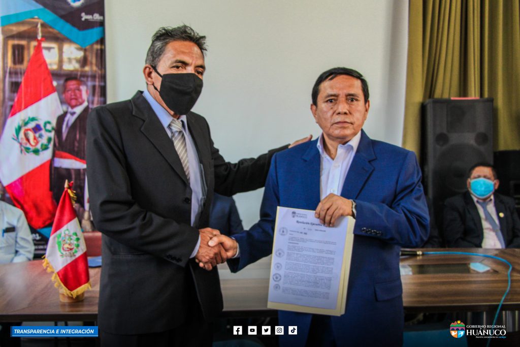 La entrega de la Resolución Ejecutiva Regional, la efectuó el propio Gobernador Regional en presencia del gerente regional, Neil Cuba García, y de desarrollo social, Gustavo Alvarado Coz y el ex director regional de Educación, jefes de área y servidores de la DRE.