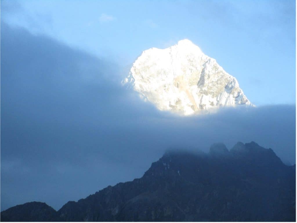 Andar sobre los cinco mil, requiere de voluntad, mucha voluntad y un correcto estado físico, la Cordillera Blanca y el Huayhuash son un regalo dentro de la cadena andina, un macizo ecuatorial donde cada gota de sudor es un paso hacia arriba o hacia abajo, donde el cuerpo se siente de maneras jamás concebidas. Una zona para las decisiones significativas son las cumbres de los nevados y las lagunas, en ambos espacios el viento disipa las frases excesivas y endurece las neuronas de tal manera que solamente las ideas sustanciales brotan; los nevados y las lagunas son agua, más que en estados diferenciados, el mismo elemento con distintas formas de envolverte, cubrirte, protegerte; un tiempo detenido que no acepta despojos y, el cuerpo en esas condiciones extremas percibe la lluvia, el color, brillo, aroma, sonido de la nieve perpetua como un manto que le abriga y sumerge hasta perderse para siempre.