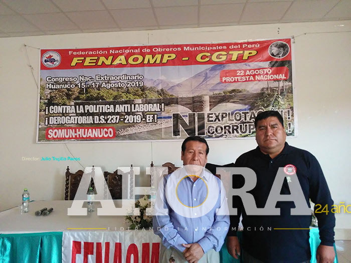 Los dirigentes de los obreros municipales afiliados a la Federación Nacional de Obreros Municipales del Perú (Fenaomp), se reúnen en Huánuco ayer y hoy para participar en el Congreso Nacional Extraordinario convocado para capacitar en una serie de temas que resultan importantes sobre la salud y seguridad de los obreros, informó Mauro Chipana Huayhuash, secretario general de la Fenaomp. El congreso se desarrolla en el auditorio de la Municipalidad de Huánuco.