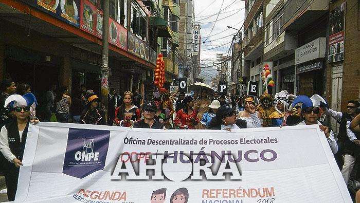 La Oficina Descentralizada de Procesos Electorales (ODPE Huánuco), realizó un colorido pasacalle por las principales vías de la ciudad con el objetivo de promover la participación de diversos actores electorales en el Referéndum Nacional y la Segunda Elección Regional del próximo 9 de diciembre.