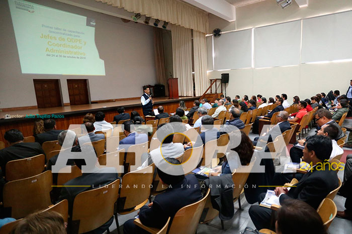 El primer taller está dirigido a los 60 jefes de las ODPE y cinco accesitarios; y se realiza desde el jueves 24 hasta el miércoles 30 de octubre, en el horario de 08:30 a 18:00 horas.