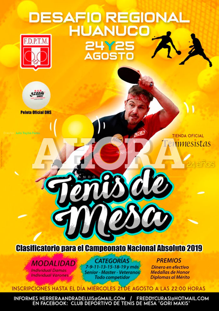 El club deportivo de tenis de mesa Gori Makis organiza el torneo denominado Desafío Regional, para este sábado 24 y domingo 25 y será clasificatorio para el Campeonato Nacional absoluto. Las inscripciones se cerraron ayer, pero los interesados que deseen más información pueden contactarse con las páginas web: [email protected] o [email protected].
