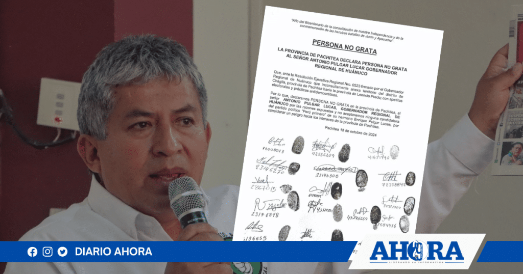 En un contundente acto de protesta, las autoridades y ciudadanos de la provincia de Pachitea, en la región Huánuco, han declarado al Gobernador Regional Antonio Pulgar Lucar como “persona no grata”. La resolución, emitida el 18 de octubre de 2024, responde a lo que consideran una decisión inconsulta y antidemocrática por parte del gobernador al firmar la Resolución Ejecutiva Regional Nro. 0523. Dicha resolución anexa de manera unilateral el territorio del distrito de Chaglla, perteneciente a Pachitea, al distrito de Leoncio Prado.
