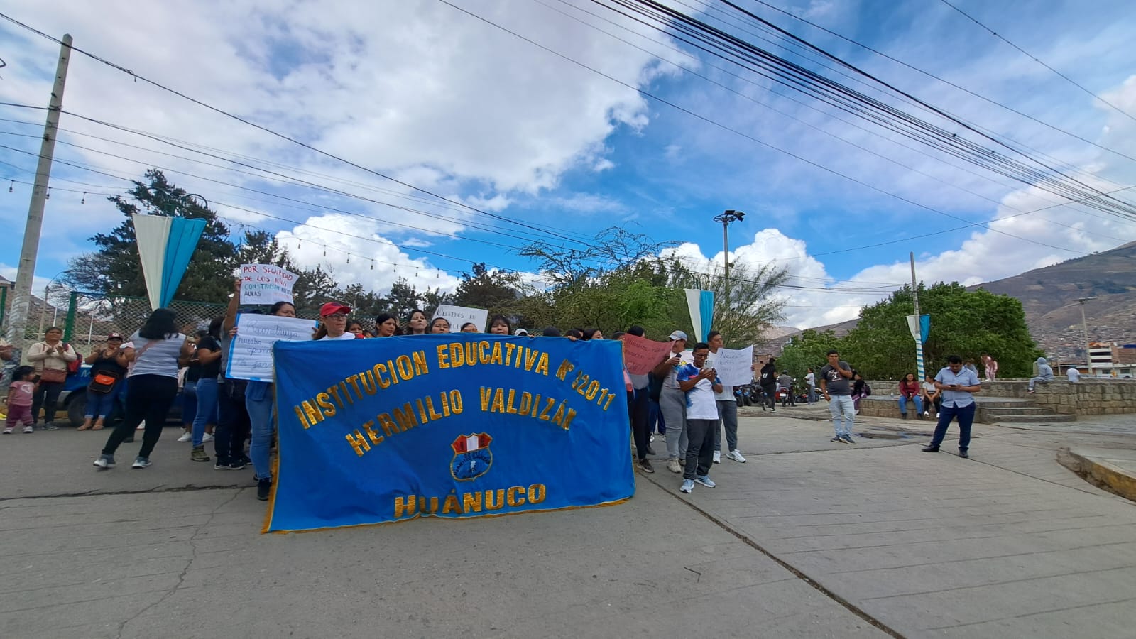 Padres de familia de la institución educativa N.° 32011 Hermilio Valdizán – Primaria se movilizaron hasta el frontis del Gobierno Regional de Huánuco para exigir la construcción de una nueva infraestructura escolar.