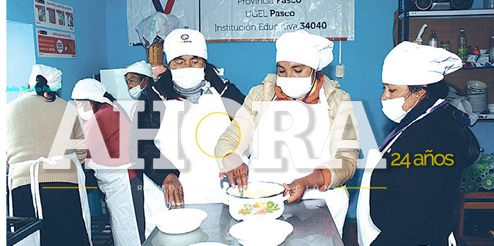 Juana Robles Najera, madre de familia de la Institución Educativa n.° 34081 del distrito de Pallanchacra, detalla que en la pasantía aprendió a cocinar arroz a la jardinera con tortilla de huevo y cómo mantener ordenada y limpia la cocina.