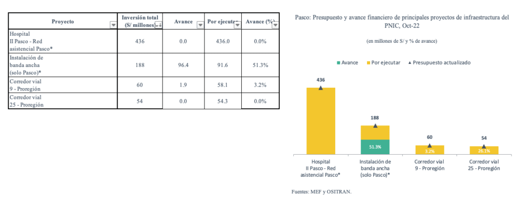 Un importante proyecto de infraestructura, que ha sido añadido en el plan nacional 2022-2025, es la instalación de banda ancha en la región Pasco.