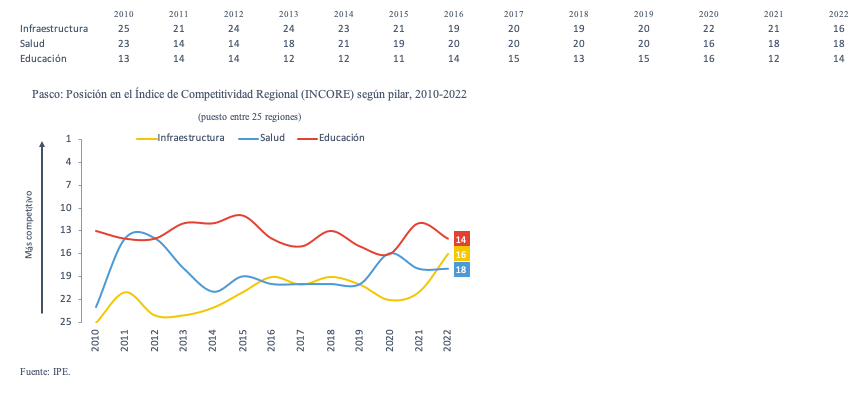 Actualmente, Pasco ocupa el puesto 18 de 25 regiones en el puntaje del pilar Salud. Se espera que esta obra inicie ejecución física en diciembre de este año y, una vez en operación, impulse el desempeño de la región en el pilar Salud.